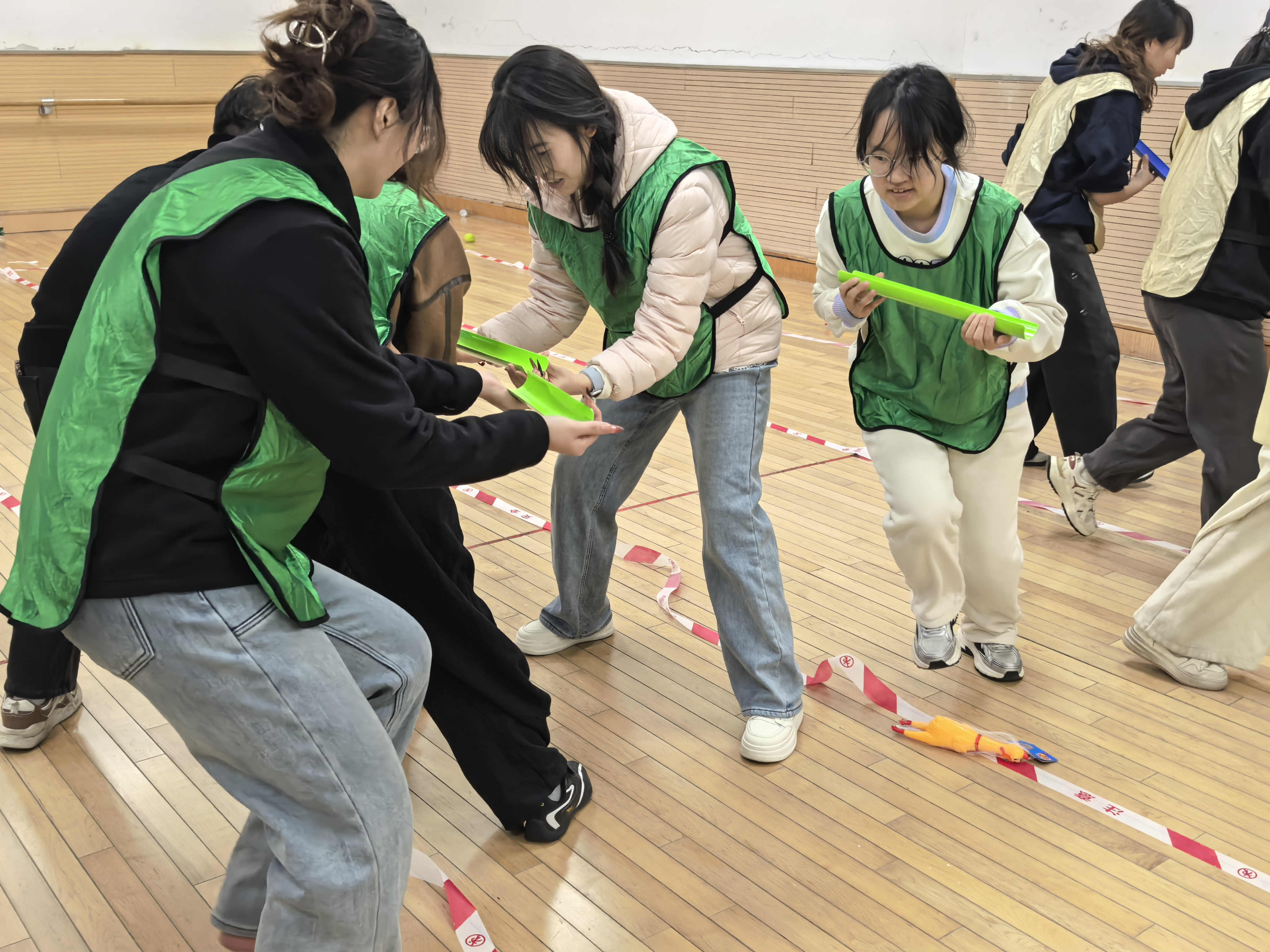 運(yùn)動會設(shè)置了小豬快跑、珠行萬里、蒙眼對決等五個別具創(chuàng)意的項(xiàng)目,不僅考驗(yàn)著個人在速度上的爆發(fā)力與技巧上的精準(zhǔn)度,更在一次次協(xié)作闖關(guān)過程中,悄然培養(yǎng)了團(tuán)隊(duì)成員間協(xié)作配合的默契。經(jīng)過近兩小時的激烈角逐,最終“金隊(duì)”以總積分38分榮獲一等獎,“紅隊(duì)”與“黃隊(duì)”分別獲二、三等獎。此次大賽為我院研究生搭建了切磋競技、釋放青春活力的平臺,更凝聚起團(tuán)結(jié)向上的精神力量。無論是選手們?nèi)_刺的身影、隊(duì)員間的默契配合,還是場邊觀眾此起彼伏的加油吶喊,都定格成本次活動最鮮活動人的記憶。
