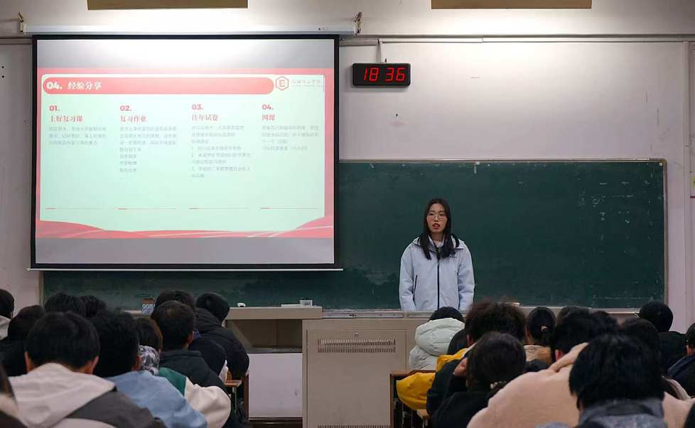 會(huì)上,兩位同學(xué)圍繞獎(jiǎng)學(xué)金類型、學(xué)習(xí)規(guī)劃與綜合素質(zhì)拓展等方面展開分享。她們系統(tǒng)介紹了學(xué)院設(shè)立的各類獎(jiǎng)學(xué)金,并基于自身經(jīng)驗(yàn),強(qiáng)調(diào)了“預(yù)習(xí)-聽課-復(fù)習(xí)”的高效學(xué)習(xí)閉環(huán),以及通過(guò)考證、競(jìng)賽、學(xué)生工作與志愿服務(wù)等途徑提升綜合能力的重要性。她們鼓勵(lì)大家勇于嘗試、主動(dòng)爭(zhēng)取。