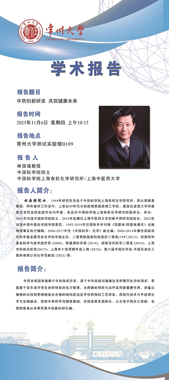 | 【學(xué)術(shù)報告】11月6日自然與合成有機化學(xué)研究院學(xué)術(shù)報告——林國強院士 中國科學(xué)院 |